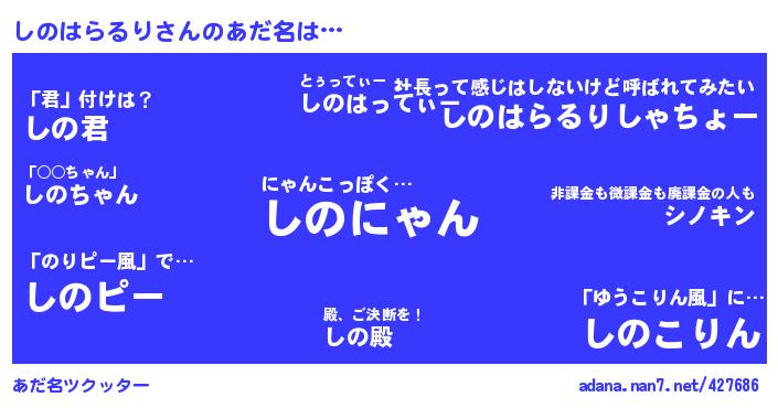 たとえば“しのはらるり”さんがあだ名になると・・・