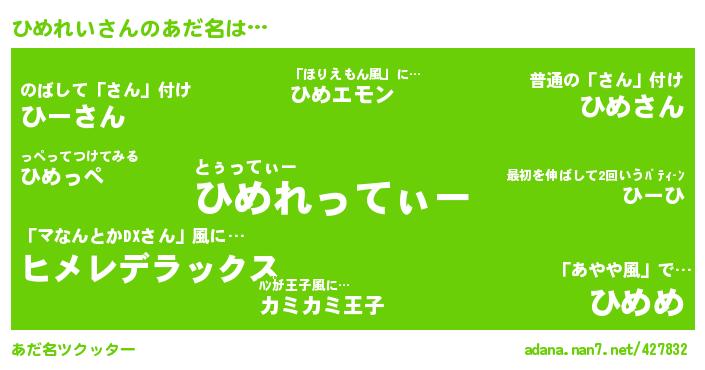 | 意味不明あだ名 | 『永久保存ひめれい』『自称ひめれい』『住所不定無職ひめれい(95歳)』 |