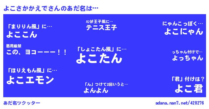 | 2回繰り返すあだ名 | 『もみもみ』『きょろきょろ』『にゃーにゃー』『へらへら』 |