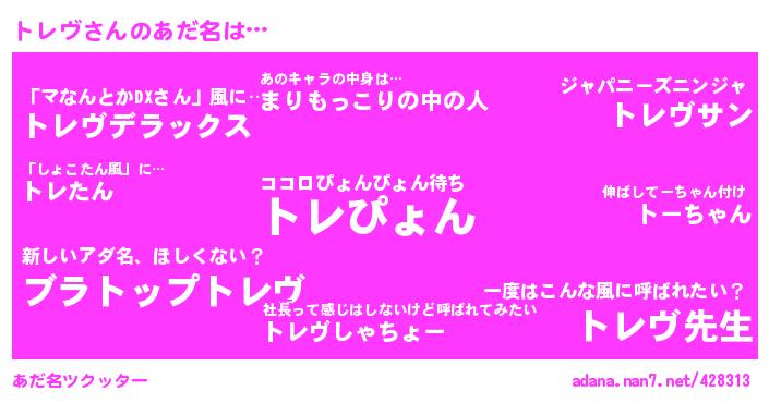 | ポケモン風あだ名 | 『トレセウス』『トレゴンZ』『ゼニトレ』『ヒトレヴ』 |