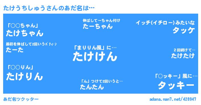 たとえば“たけうちしゅう”さんがあだ名になると・・・