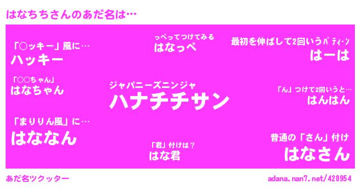 | ピコ太郎風あだ名 | 『ピコタ郎』『タタ太郎』『タケ四郎』『タコ太郎』『ピタ次郎』 |