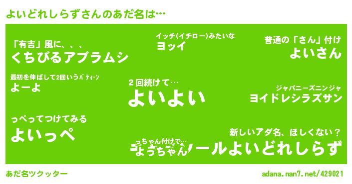 | ピコ太郎風あだ名 | 『ピエ二郎』『エエ太郎』『エフ四郎』『ピコエ郎』『エコ次郎』 |