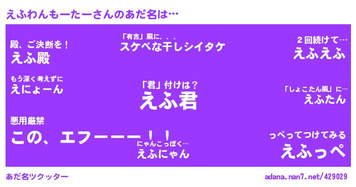 たとえば“えふわんもーたー”さんがあだ名になると・・・