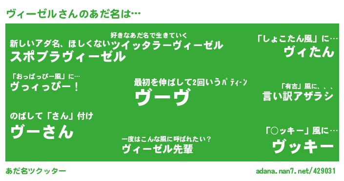 | 2回繰り返すあだ名 | 『とぷとぷ』『ここうう』『めりめり』『わきわき』『うるうる』 |
