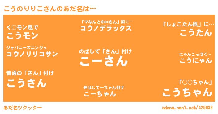 たとえば“こうのりりこ”さんがあだ名になると・・・