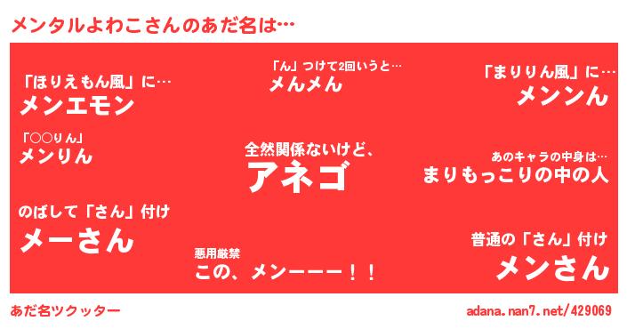 たとえば“メンタルよわこ”さんがあだ名になると・・・