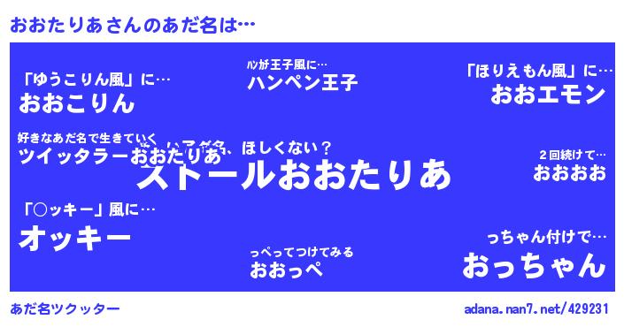 | ピコ太郎風あだ名 | 『トト太郎』『トリ六郎』『トコ四郎』『ピト太郎』『ピコト郎』 |