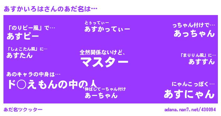 たとえば“あすかいろは”さんがあだ名になると・・・