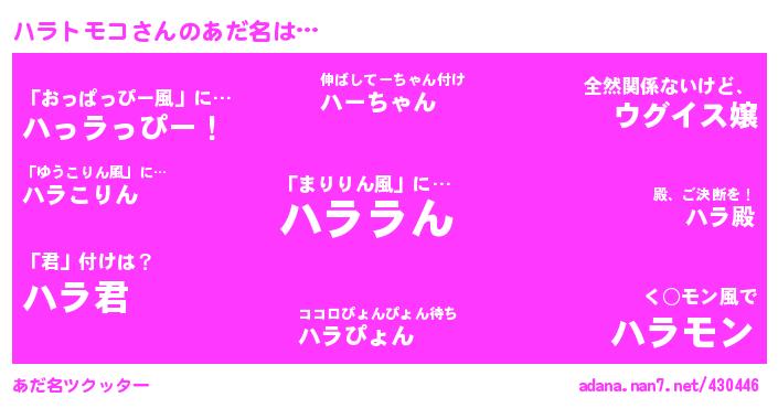 たとえば“ハラトモコ”さんがあだ名になると・・・