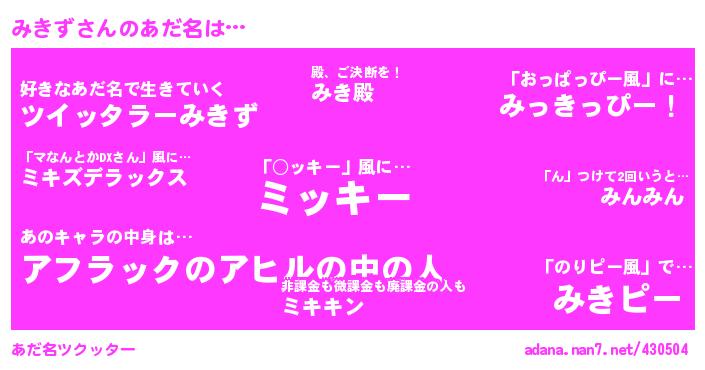 | 2回繰り返すあだ名 | 『ゆゆづづ』『ゆづゆづ』『にゃーにゃー』『もきゅもきゅ』 |