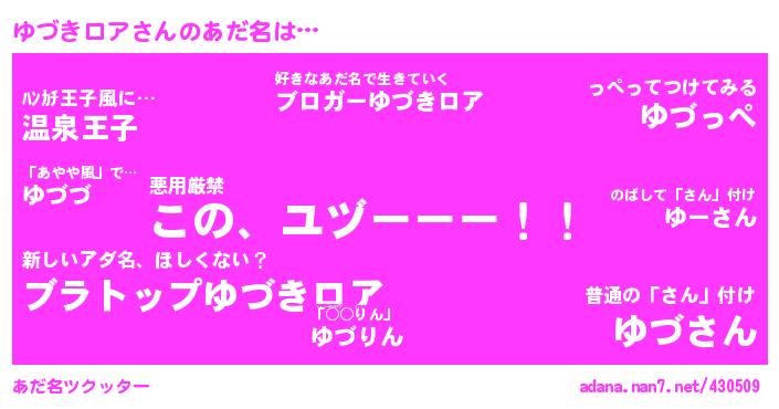 たとえば“ゆづきロア”さんがあだ名になると・・・