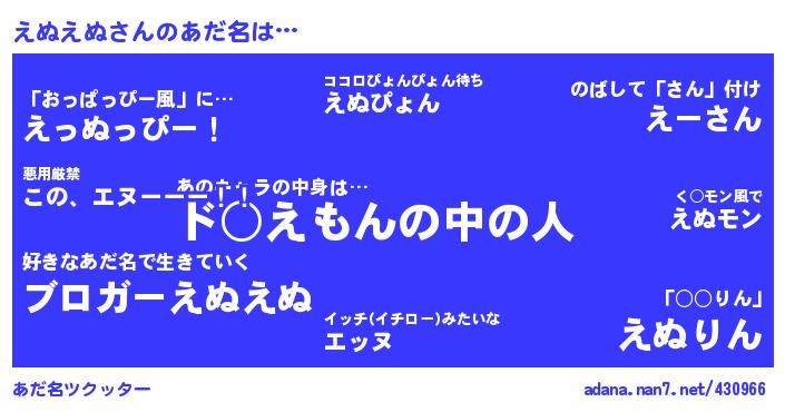 | 意味不明あだ名 | 『とにかく怪しいえぬえぬ』『眠気覚ましガムえぬえぬ味』『自称えぬえぬ』 |