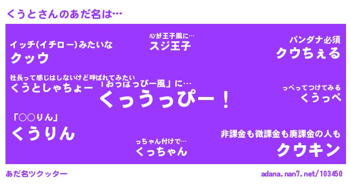 | ヒーロー風カッコイイあだ名 | 『天空の使者くうと』『ウルトラ戦士クウト』『仮面クウダー』 |