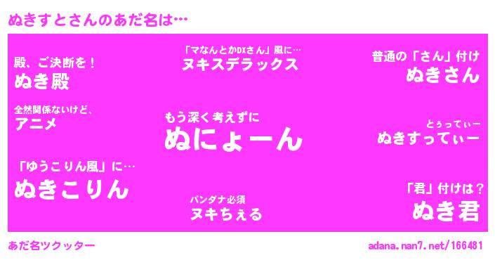 | ヒーロー風カッコイイあだ名 | 『天空の使者ぬきすと』『魔戒騎士ヌキ』『ネオヌキスト』 |
