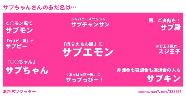 | ヘコむあだ名 | 『サブふぇ~』『豆乳』『サブぷりん』『サブちゃん(小並感)』 |