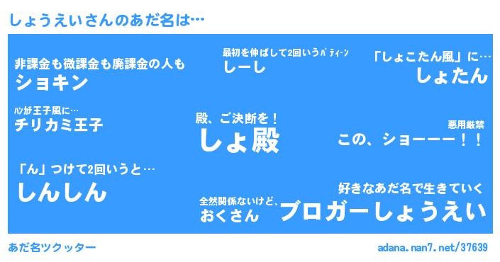 | ポケモン風あだ名 | 『ショゴンZ』『ショキング』『ヒショウエイ』『シーョイ』 |