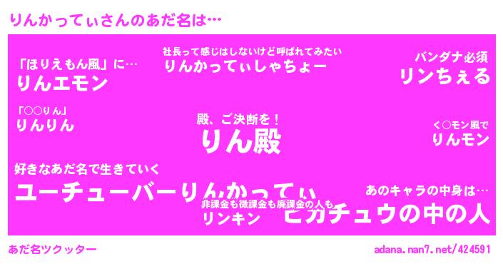 | ポケモン風あだ名 | 『ゼニリン』『メロリッン』『リーンイ』『リンカダネ』 |