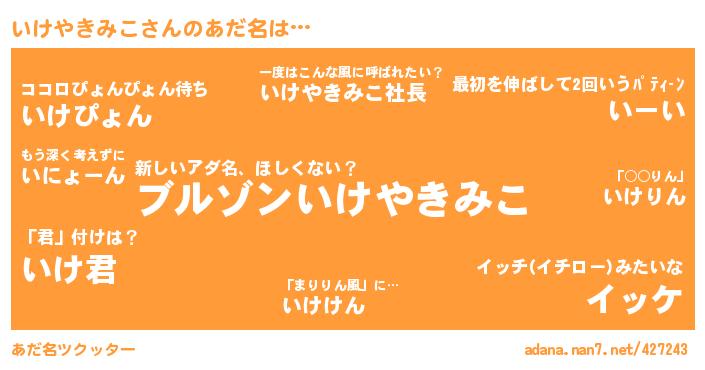 | 意味不明あだ名 | 『住所不定無職いけやきみこ(40歳)』『とにかく怪しいいけやきみこ』 |