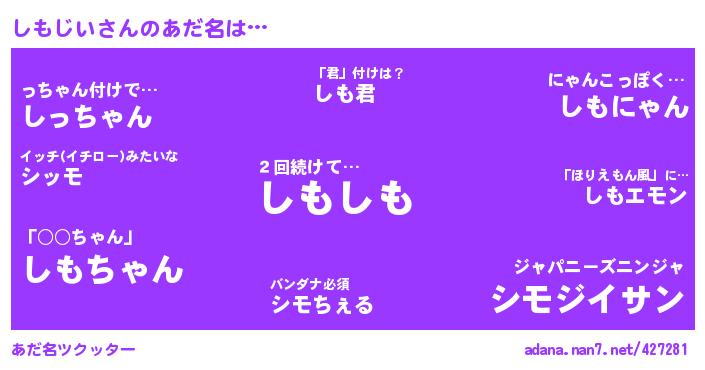 | ポケモン風あだ名 | 『シーモイ』『シックウザ』『ヒシモジイ』『メロシッモ』 |