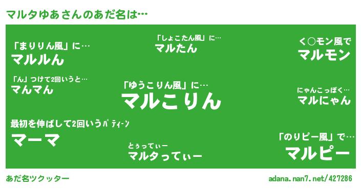| ヒーロー風カッコイイあだ名 | 『ウルトラマルタゆあマン』『ウルトラ戦士マルタユア』『ネオマルタユア』 |