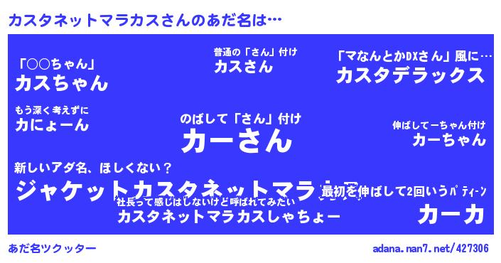 | 欧米人風あだ名 | 『ケンブリッジカスタネットマラカス』『カスタネットマラカスクリステル』 |
