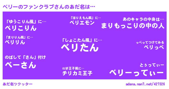 ↓あだ名「ベリーのファンクラブ」にコメントする!