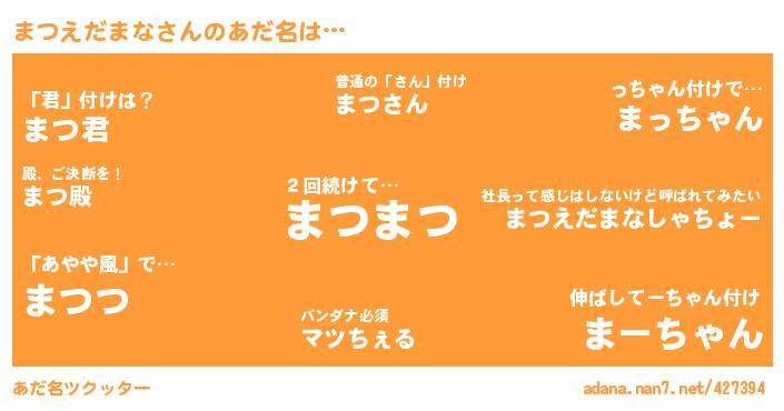 | ポケモン風あだ名 | 『ヒマツエダマナ』『マツエダネ』『マツキング』『マーツイ』 |