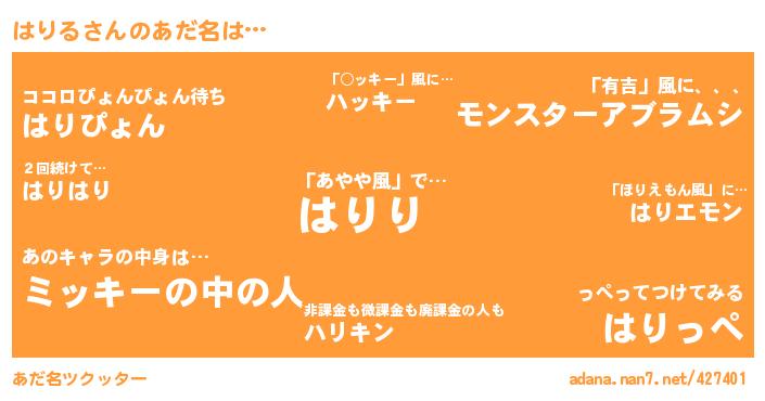 ↓あだ名「はりる」にコメントする!