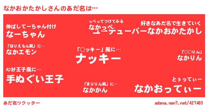 なかおかたかしさんのあだ名を作成しました!
