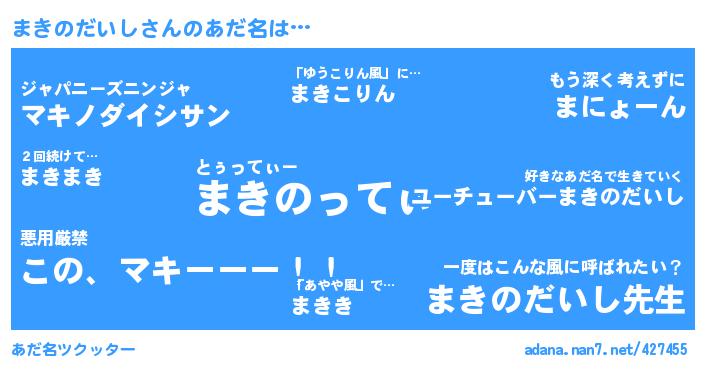 | ヒーロー風カッコイイあだ名 | 『スーパーマキノダイシ』『ネオマキノダイシ』『慈愛の使者まきのだいし』 |