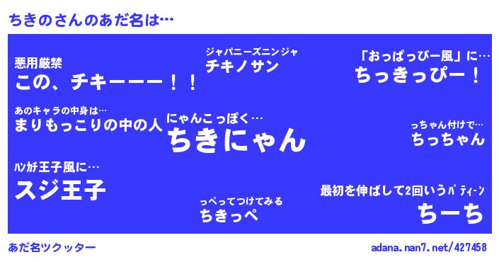 | ヘコむあだ名 | 『ちきふぇ~』『豆乳』『ちきぷりん』『ちきの(小並感)』 |