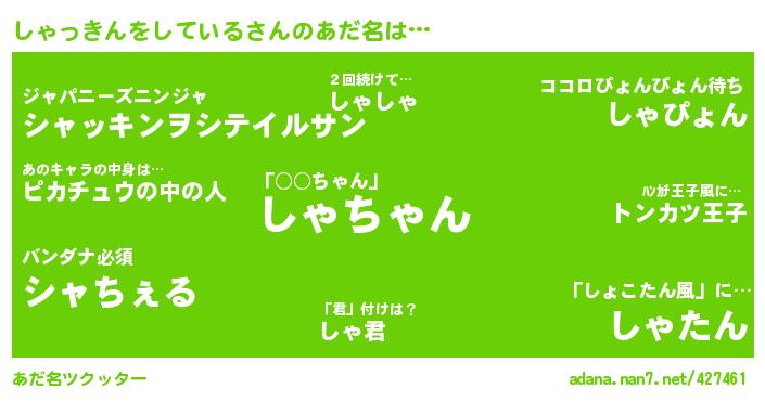 | ヒーロー風カッコイイあだ名 | 『究極戦士シャッキンヲシテイル』『友情の使者しゃっきんをしている』 |