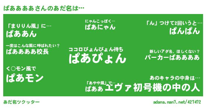 | ヒーロー風カッコイイあだ名 | 『仮面パアダー』『ウルトラ戦士パアアアア』『幻影騎士パア』 |