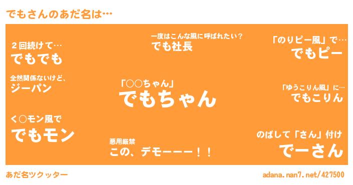 | ヒーロー風カッコイイあだ名 | 『究極戦士デモ』『魔戒騎士デモ』『スーパーデモ』『ネオデモ』 |