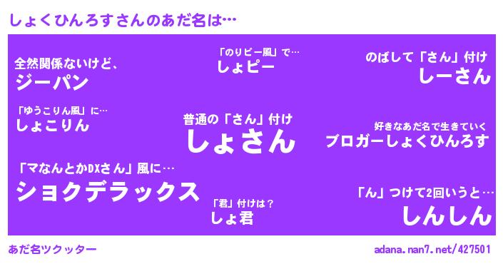 | ポケモン風あだ名 | 『ショキング』『シーョイ』『ショセウス』『ゼニショ』 |