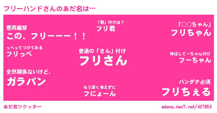 | ヒーロー風カッコイイあだ名 | 『ウルトラフリーハンドマン』『魔戒騎士フリ』『天空の使者フリーハンド』 |