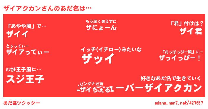 | ヒーロー風カッコイイあだ名 | 『ウルトラザイアクカンマン』『仮面ザイダー』『銀牙騎士ザイ』 |