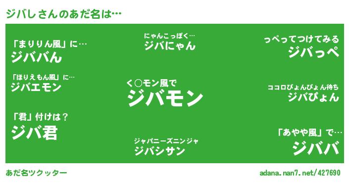 | ポケモン風あだ名 | 『ジバセウス』『ジバシダネ』『ジバゴンZ』『ジーバイ』 |