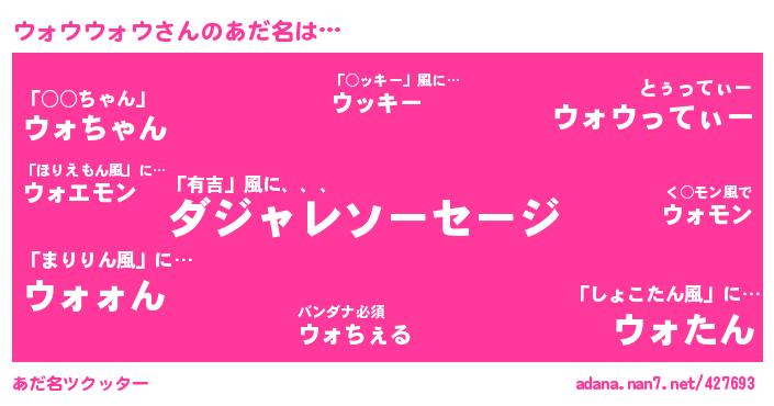 | ファンタジー風あだ名 | 『ウォディッシュ』『エターナルウォウウォウー』『ユリウォヴァット』 |