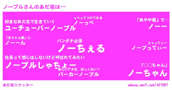 | ポケモン風あだ名 | 『ノックウザ』『ゼニノー』『ノーブダネ』『ノーゴンZ』 |