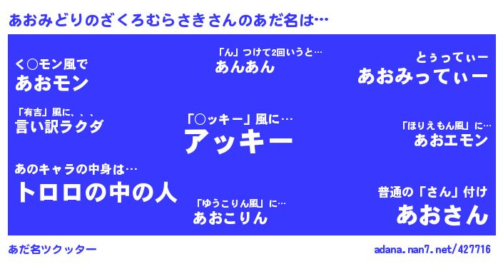 あおみどりのざくろむらさきさんのあだ名を作成しました!