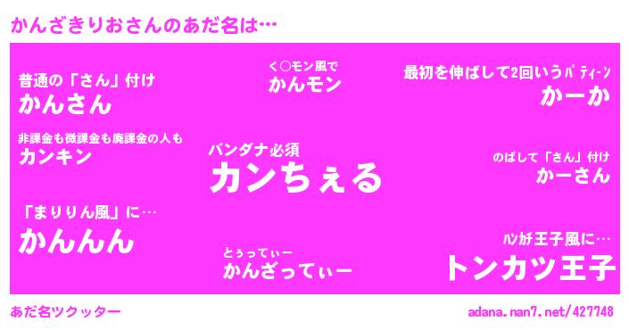 | ポケモン風あだ名 | 『ゼニカン』『カンキング』『ヒカンザキリオ』『カンセウス』 |