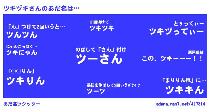 | 意味不明あだ名 | 『とにかく怪しいツキヅキ』『永久保存ツキヅキ』『ツキヅキフォーエバー』 |