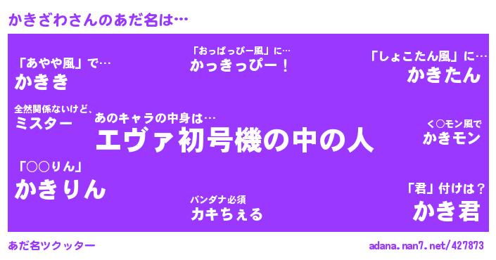 | 男性向けラノベタイトル風あだ名 | 『かきざわの嫁は女の子じゃないと思った?』『魔法科高校のかきざわ』 |