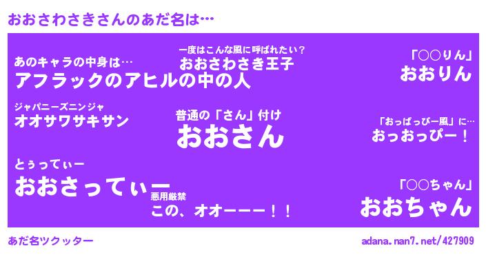 | ヘコむあだ名 | 『おおふぇ~』『豆乳』『おおぷりん』『おおさわさき(小並感)』 |