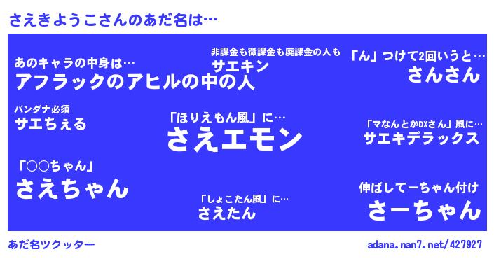 | 意味不明あだ名 | 『住所不定無職さえきようこ(40歳)』『とにかく怪しいさえきようこ』 |