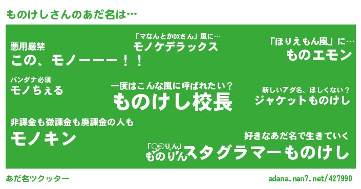 | ヒーロー風カッコイイあだ名 | 『スーパーモノケシ』『友情の使者ものけし』『最強戦士モノケシ』 |