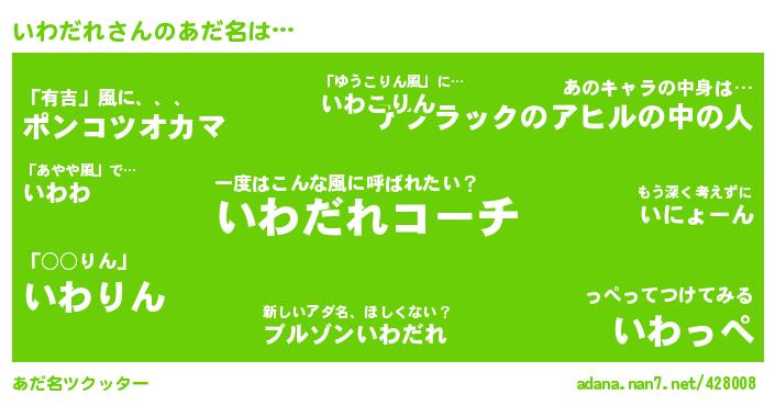 | 意味不明あだ名 | 『いわだれフォーエバー』『永久保存いわだれ』『ペロリンいわだれ』 |