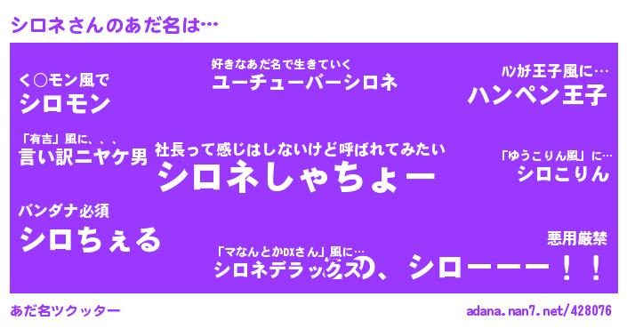 | 欧米人風あだ名 | 『シロネクリステル』『ウサインシロネ』『トリンドルシロネ』 |